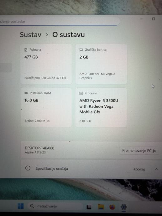 Prodajem laptop Acer Aspire 3 A315-23 u vrlo dobrom i potpuno ispravnom stanju.