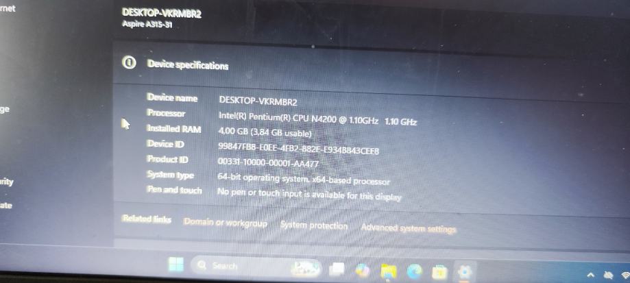 Acer Aspire A315-31 | Pentium | 120GB SSD | Windows 11 + Office