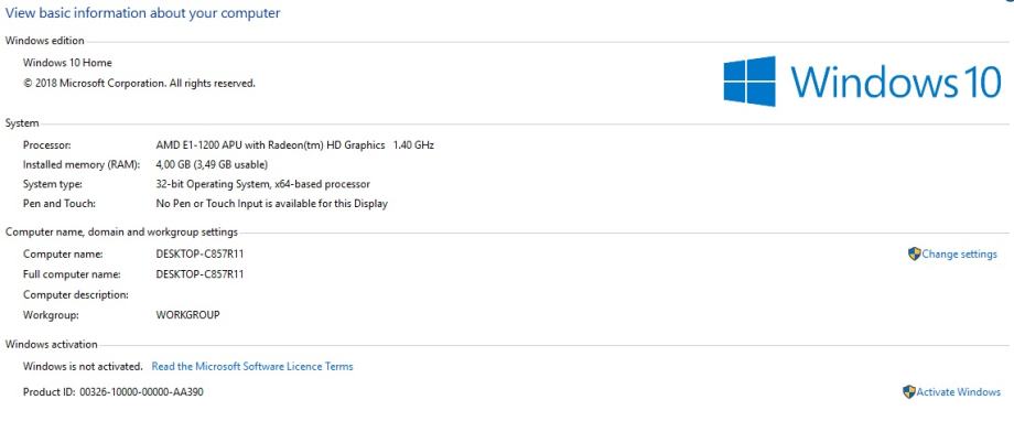 - Procesor: AMD E1-1200 with Radeon HD Graphics 1.40 Ghz