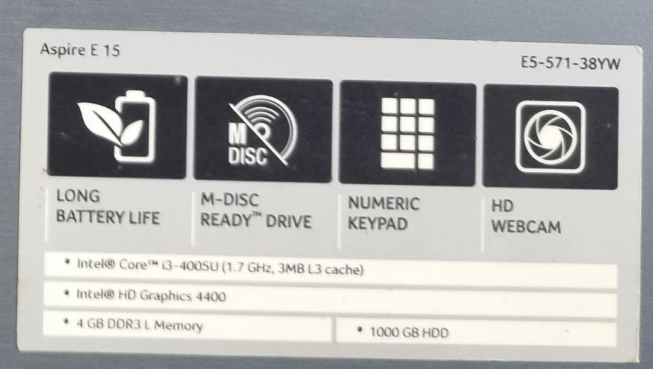 Acer Aspire E5-571-38YW – 15.6", i3, 1TB HDD, Windows 10 Pro