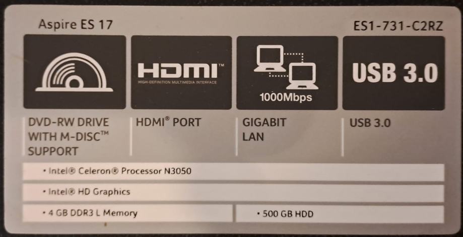 Acer Aspire ES1-731-C2-RZ, 17.3" Incha
