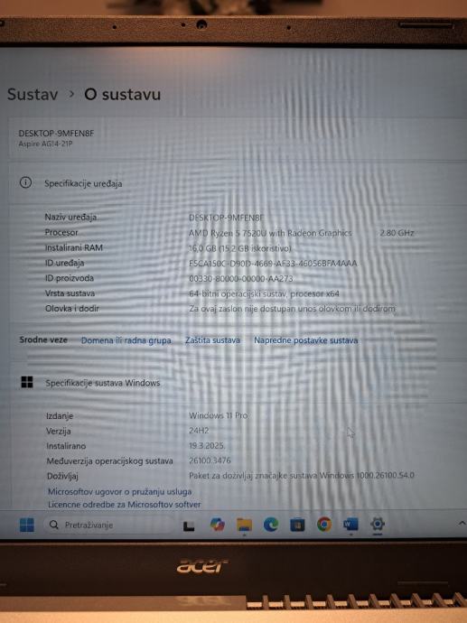 Laptop je slabo korišten i samo u svrhe posla,kupljen je prije pola godine ali nemam dokumentaciju (proizveden je 24.3.2024).
