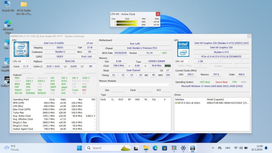 ⭐️Procesor: Intel Core i5-6500U (2.30GHz, do 2.8 GHz) –