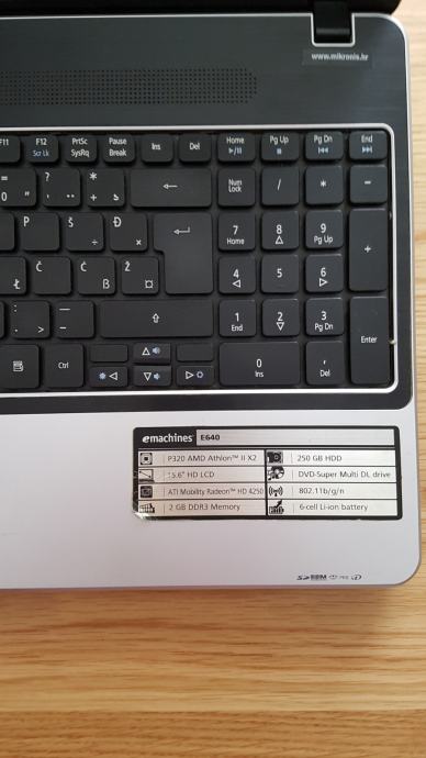 Acer eMachines E640 - stari laptop od šogora, ne pali se, vjerojatno otišla matična ploča. Prodaje se i u dijelovima i u komadu (minus prodani dijelovi).