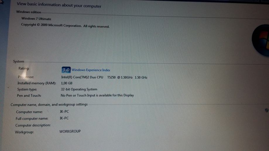 Intel(R) Core (TM2) DUO CPU T5250 1,50GHz