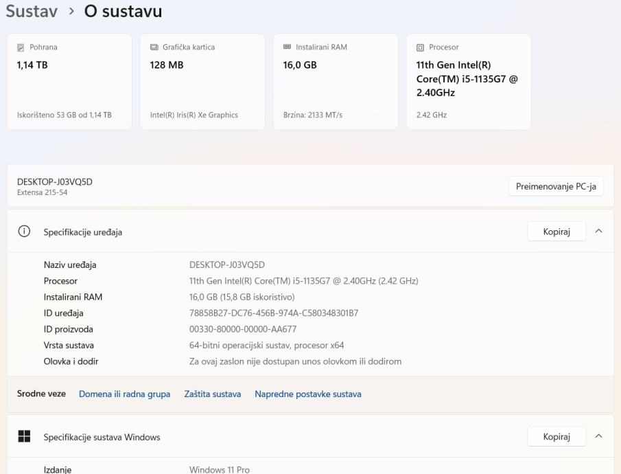 - Procesor: Intel® Core™ i5-1135G7 (8M Cache, do 4.20 GHz)