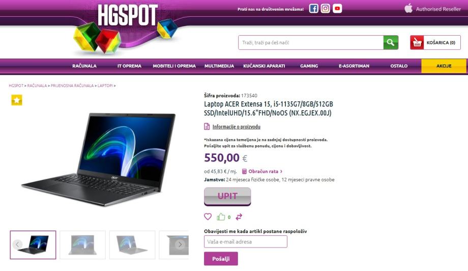 - Takav model laptopa u maloprodaji košta 550e (HGSpot)
