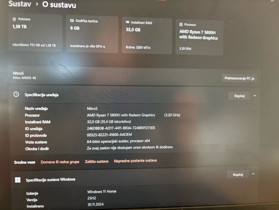 Izuzetno he malo korišten pošto nisam stigao nikako gamati tako da je baterija odlična. Laptop je nadograđen tako da je konfiguracija kao na slici.
