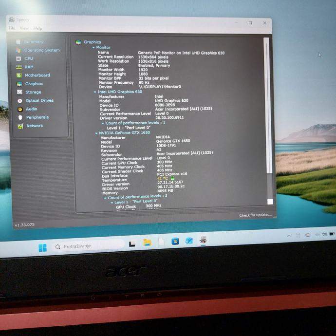 Grafička kartica: NVIDIA GeForce GTX 1650, 4 GB GDDR5