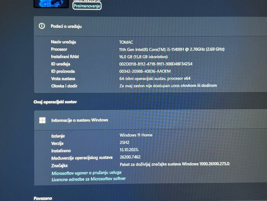 Prodajem gaming laptop Acer Nitro 5 u odličnom stanju sljedećih specifikacija: