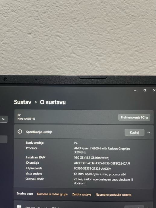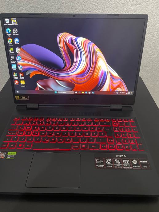 Prodajem Acer gaming laptop s crvenom osvjetljenom tipkovnicom. Laptop dolazi s AMD Ryzen procesorom i NVIDIA GeForce grafičkom karticom, što ga čini prikladnim za zahtjevnije zadatke. Ekran je kvalitetan s tankim okvirima, a sam dizajn ima gaming estetiku s Angular linijama na stražnjoj strani kućišta. Tipkovnica ima RGB osvjetljenje s mogućnošću prilagodbe. Laptop je u funkcionalnom stanju i radi bez problema.