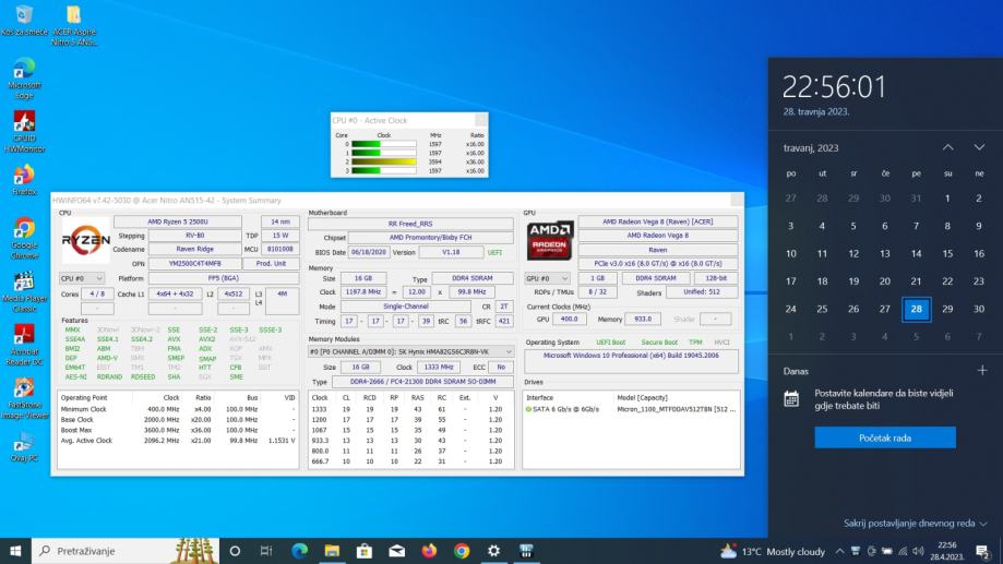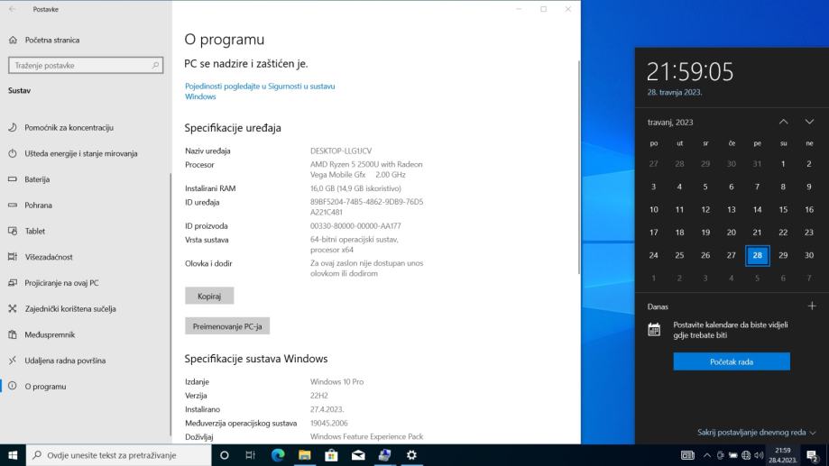 • Grafički sustav: AMD Radeon(TM) Vega 8 Graphics (1 GB)