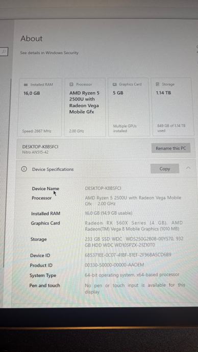 Prodajem rabljeni gaming laptop Acer Nitro AN515-42.