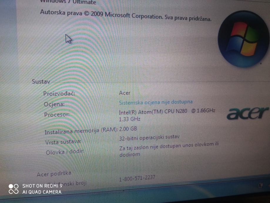 Prodajem laptom manjih dimenzija Acer One KAV10,Intel Atom 1.60GHz, 10,1 inčni led ekran,2 GB rama,80 GB hard disk,njemačka tipkovnica,baterija traje 1-1.5 h,punjač.Ispravan i očuvan.