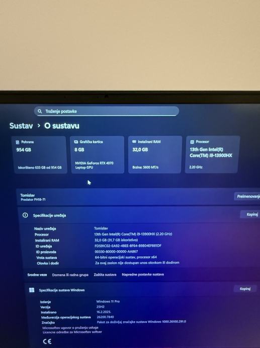 - Ekran 18" 165Hz osvježavanje te 2K rezolucija