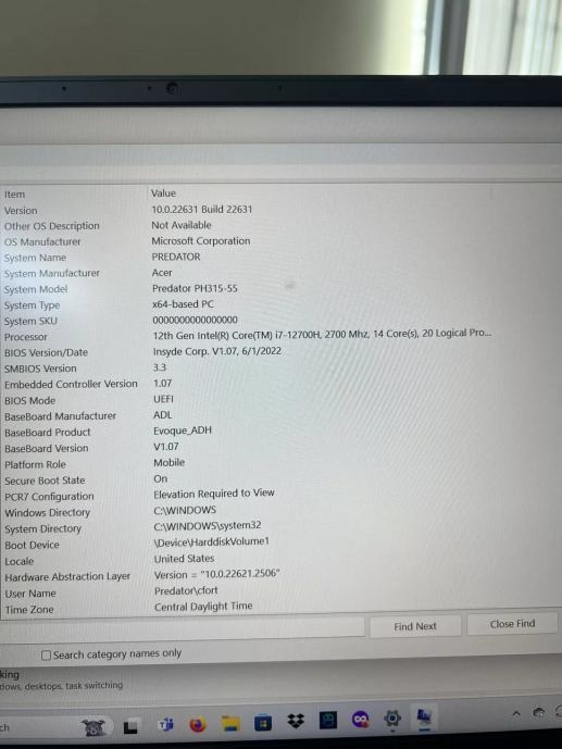 Acer Predator Helios 300 15.6" 1920x1080 i7-12700H 32GB 2TB SSD