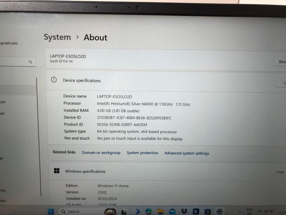 ACER SWIFT 1 PINK 14", N6000/ 4GB RAM/ 128GB SSD/ WIN 11. R1/ RATE!