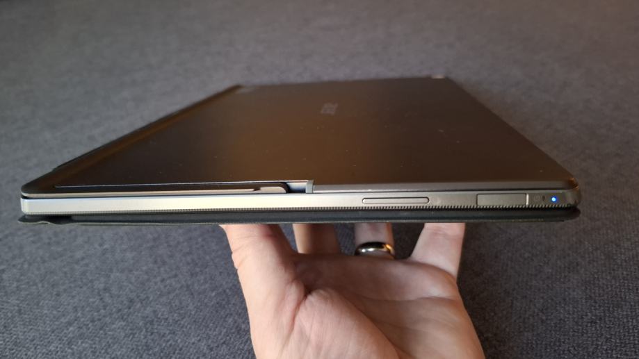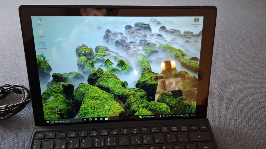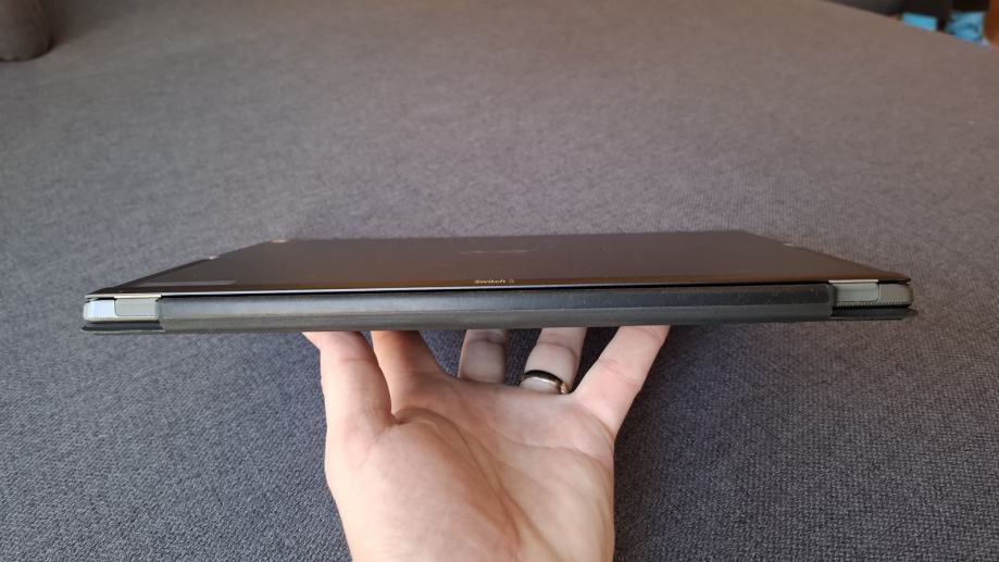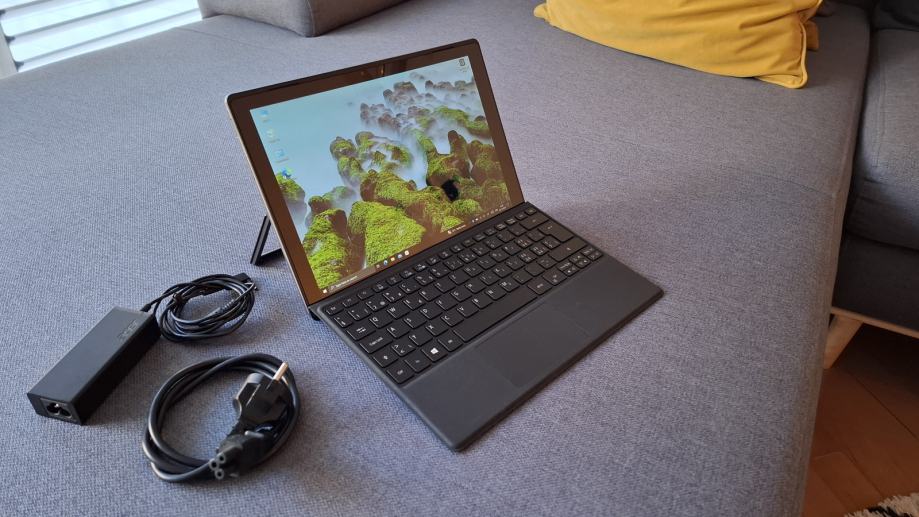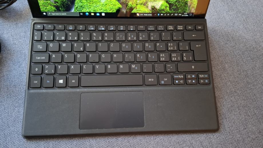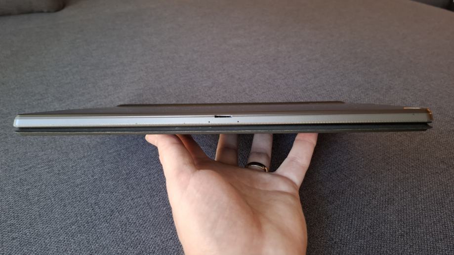 Prodajem rabljeni laptop / tablet Acer Switch 5 2-in-1 touchscreen, procesor Intel Core i3-7130U 2,7 GHz, 8 GB RAM, 256 GB SSD NVMe disk, 12" 2K IPS 2160x1440 3:2 touchscreen / dodirni zaslon, Intel HD 620 grafika, WiFi, Bluetooth, stereo zvučnici, 2 x kamera (2MP naprijed web kamera i 5MP otraga), čitač otiska prsta, 38 Wh Lithium-Polymer baterija. Od ulaza ima 1 x USB 3.1 Gen1 port, 1 x USB Type-C (Display Port), kombinirani 3,5 mm stereo jack, micro SD Card reader. Odličan poslovni laptop / tablet sa štedljivom baterijom, robustan i pouzdan, težak oko 1,3kg sa tipkovnicom. Potpuno je tih, bez ventilatora, jer ima ugrađen pasivni LiquidLoop hladnjak i ima odličan odvod topline. Tome doprinosi i pozadina tabeta, koja je napravljena od aluminija. Jako je sličan Microsoft Surface Pro 5. Svježe instalirani operativni sustav Windows 10 Home (licenca pohranjena u BIOS-u). Na tabletu sve odlično radi i lijepo je očuvan. Zdravlje baterije na 89,6%. Dolazi s odvojivom tipkovnicom, koja ima pozadinsko osvjetljenje i švicarski raspored tipki. Uz tablet dolazi originalni Acer punjač. Cijena 200€. Mogućnost plaćanja preko Revolut računa. Postoji i mogućnost plaćanja preko Njuškalo Pay Protect-a, uz prethodni dogovor. Na užem području Splita mogućnost besplatne primopredaje i testiranja tableta, a za ostatak Hrvatske i inozemstvo šaljem kako god se dogovorimo. Kontakt broj +385/98/542-000. Ako me budete kontaktirali preko Njuškala, pazite da točno upišete svoju e-mail adresu.