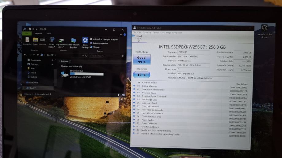 Storage: Intel SSD NVMe SSDPEKKW256G7, 256 GB