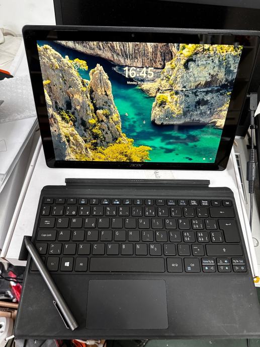 Acer Switch 5 laptop koji je ujedno i crtaći tablet. Dolazi sa magnetskom tipkovnicom, olovkom i punjačem .