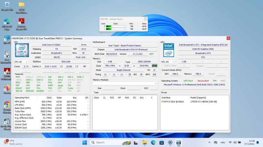 ⭐️ACER TravelMate P645, i5-5300U, 12GB, 256 M.2 SSD, Windows 11 Pro H⭐