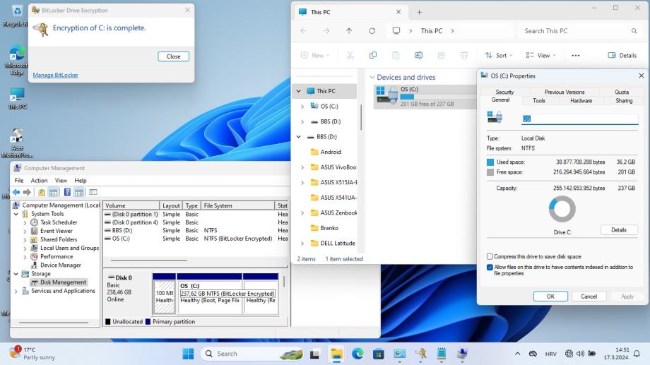 Acer DASP (zaštita diska od udara), Bitlocker.