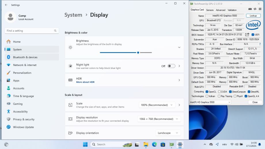 ⭐Grafički sustav: Intel HD Graphics 5500 (1 GB).