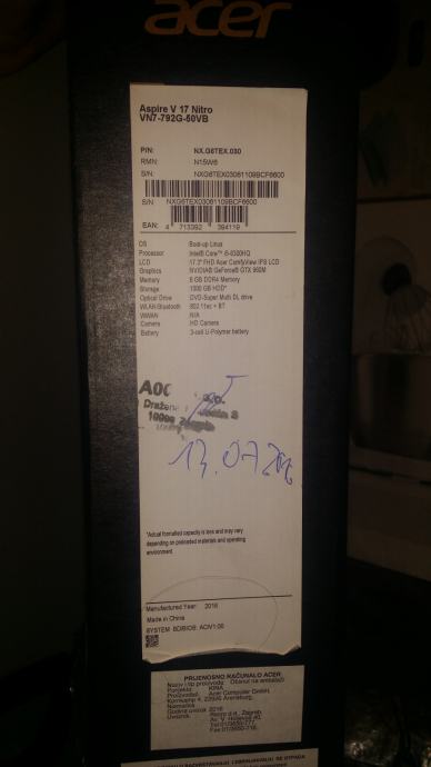 Prodajem ili mijenjam Acer Aspire V Nitro VN7-792G-50VB 17.3"....