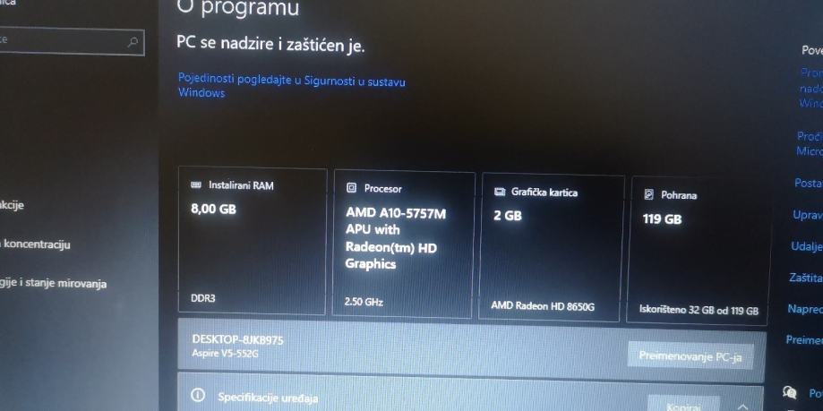 PRODAJEM LAPTOP ACER V5 552G (0957410941)