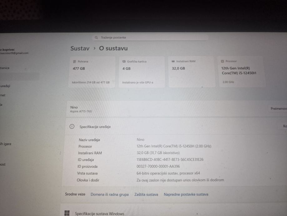 Ekran-15'6 Full hd 144hz ekran(Rijetko koji aspire ima 144hz)
