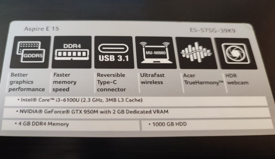 - Procesor: Intel i3 6100u (2.3Ghz)