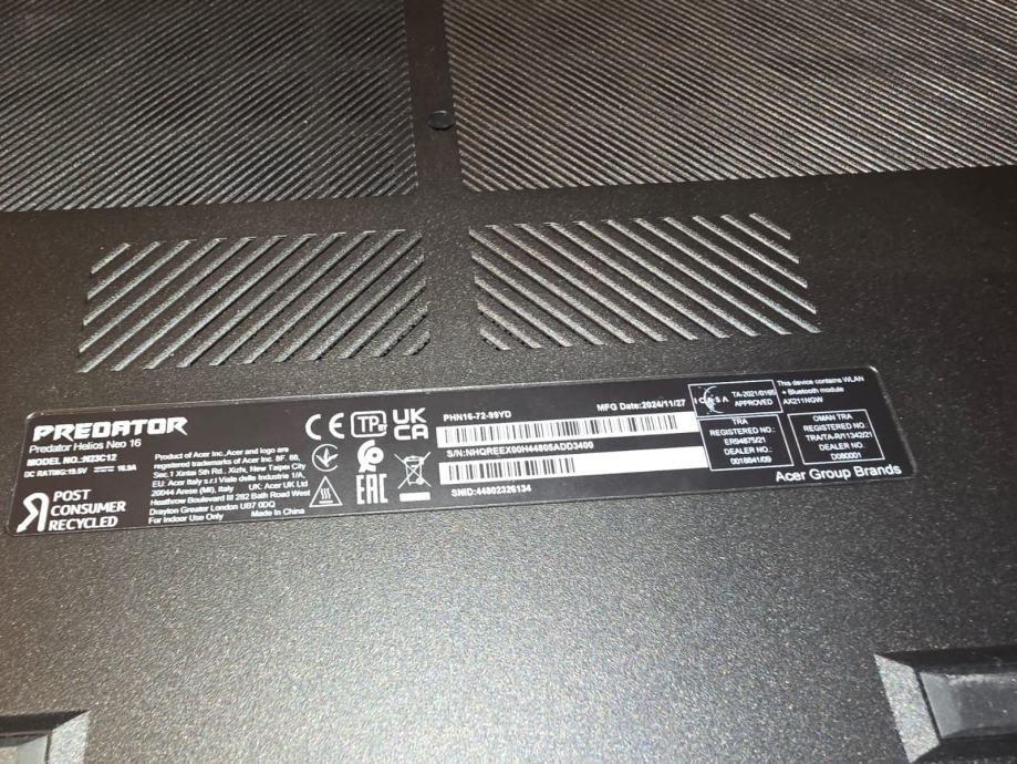 Prodajem novi laptop Acer Predator helios neo 16" N23C12 sa procesorom i9 14 generacija intel core i9 14900HX 5,8 Ghz