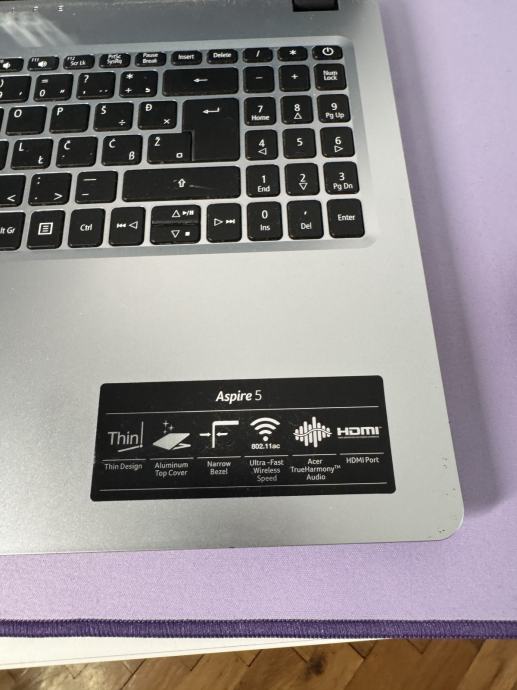 Prodajem Acer laptop, elegantnog metalnog dizajna, odlican za svakodnevnu upotrebu i lagani gaming