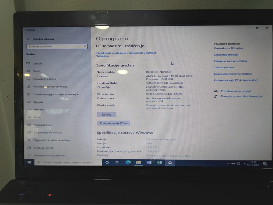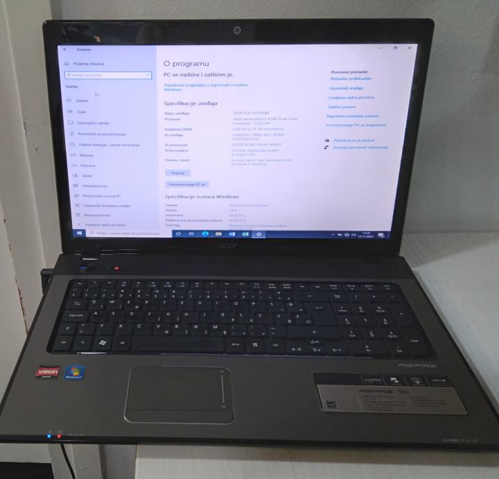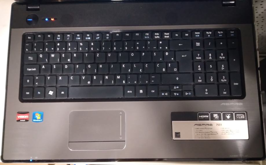 Laptop Acer Aspire 7551, X2P340, 2.2 GHz, 3GB RAM, 64GB SSD, Win10 Ent