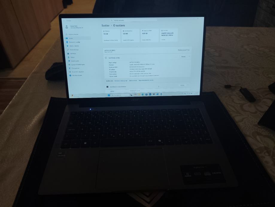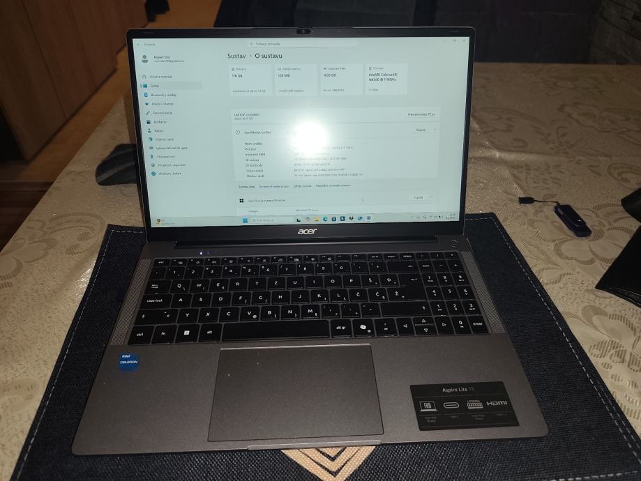 Prodajem Acer Aspire AL15-32P laptop. Radi se o rabljenom prijenosnom računalu u funkcionalnom stanju korišten svega par puta, te je stoga kao nov i u potpunosti ušćuvan. Laptop dolazi s punjačem, originalnom kutijom i spreman je za korištenje. Pogodan za svakodnevne zadatke kao što su pisanje dokumenata, pretraživanje interneta i slično.
