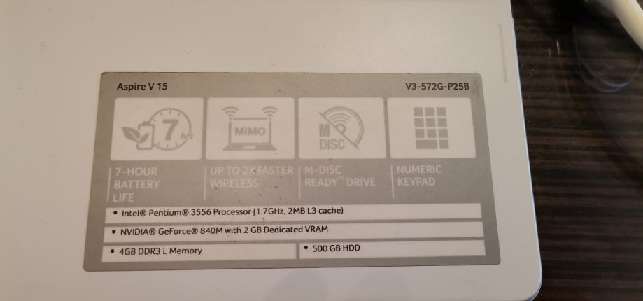 Prodajem Acer laptop u bijeloj boji. Radi se o prijenosnom računalu s 15,6-inčnim zaslonom.