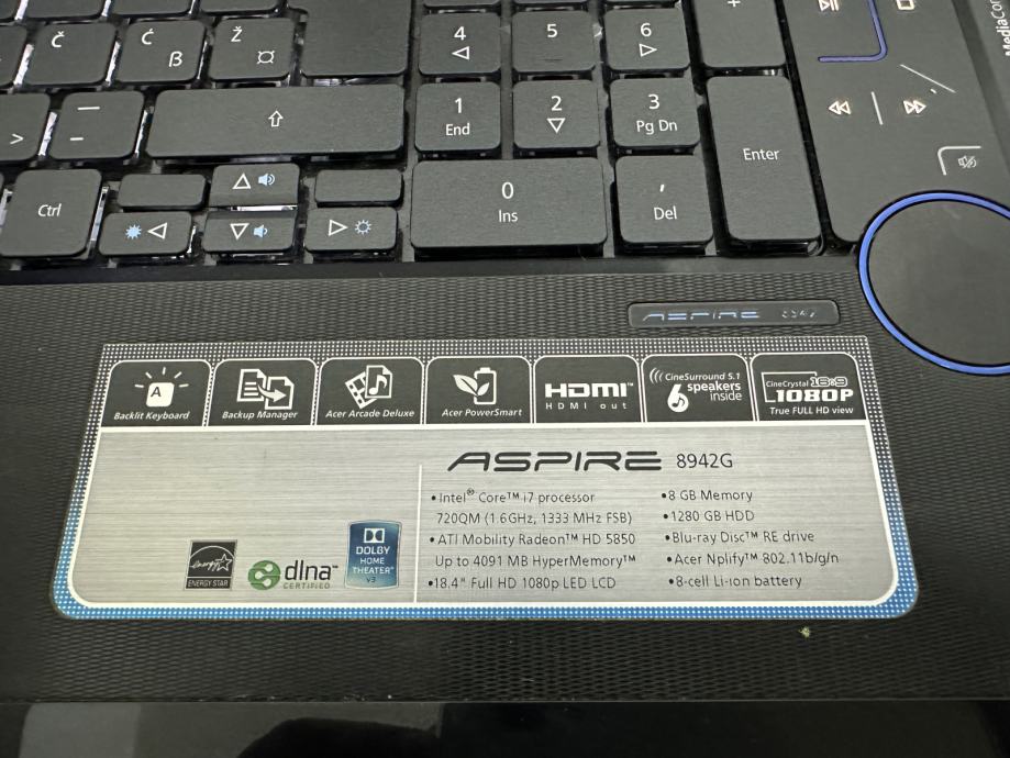 Veliki laptop Acer Aspire 8942g,LED ekran 18,4" Full hd,Intel Core i7