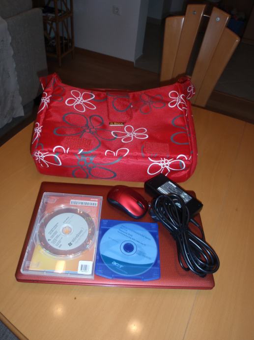 Prednost - laptop je zagasito crvene boje, kao i odgovarajući miš i torba, unikatna kombinacija !