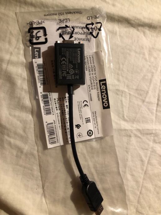 Prodajem novi Lenovo HDMI to VGA monitor adapter.