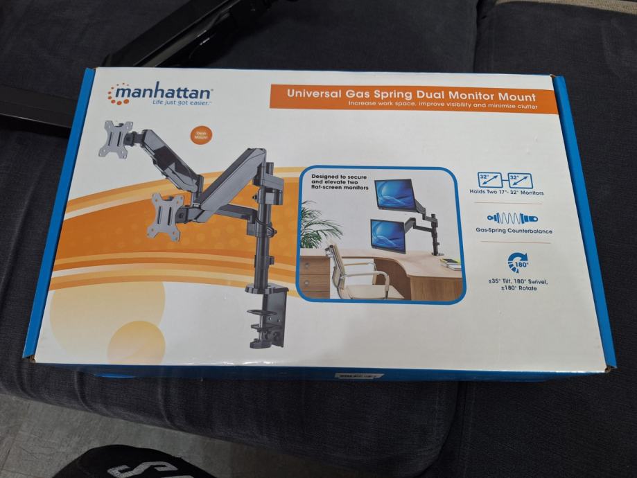 Dvostruki nosač monitora Manhattan Universal Gas Spring sigurno podržava dva televizora ili monitora od 17 "do 32". Budući da koristi plinske opruge za držanje zaslona, krakovima je potreban samo najlakši dodir kako bi ih premjestili pod najbolje kutove gledanja za vaše potrebe. Kvalitetna aluminijska i čelična konstrukcija nosača pružit će godine pouzdane usluge. Idealan za ugradnju na veliki radni stol, Manhattan Universal Gas Opruga s dvostrukim monitorom omogućuje vam da iskoristite dodatni raspon pokreta kako biste imali više prostora za obavljanje posla.