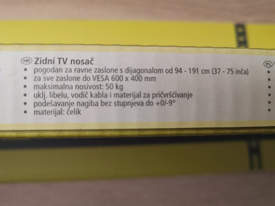 - Pogodan za ravne zaslone s dijagonalom od 94 - 191 cm (37 - 75'' inch)