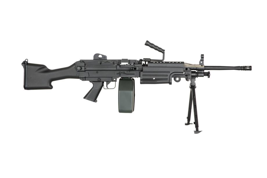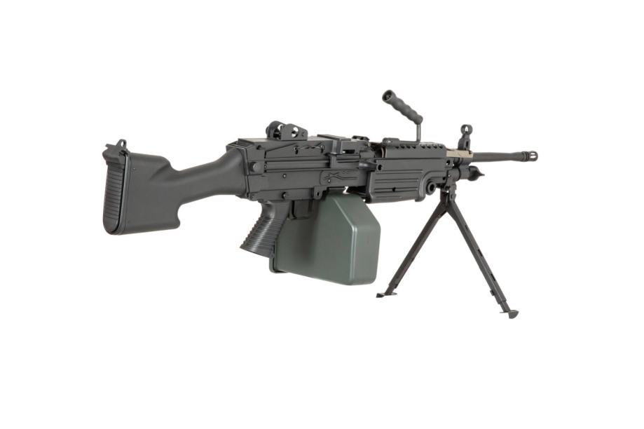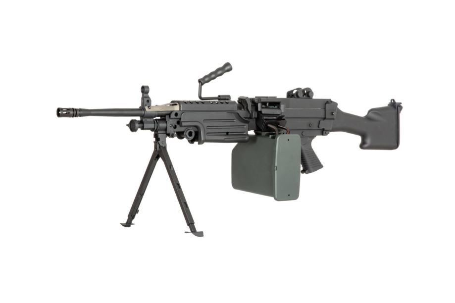 The replica is powered by a full-size, metal and heavy-duty M249 gearbox that is characteristic for its high durability and good reliability at stock. The mechanism is prepared for further tuning and ready for stress connected to providing covering fire. Inside, there are following components: