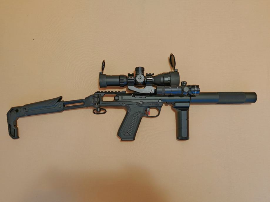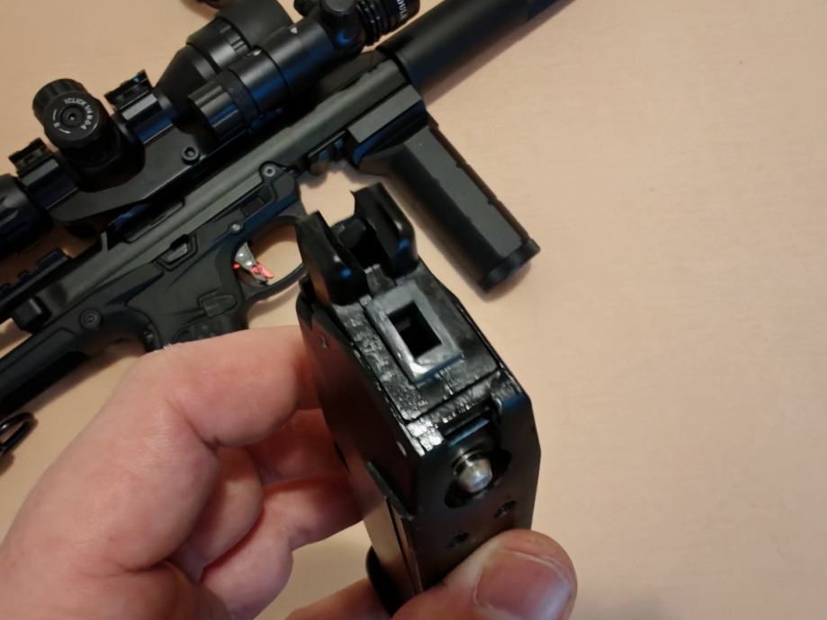 NOVO! Ispucano stotinjak kuglica, nikad nije bilo na terenu. Black mamba upper, cijeli smg je metalan osim drške i kundaka, čak i nišani. 432 FPS sa 0,28g kuglicama i crvenim plinom. 2,43J Izmjereno u Hristu.