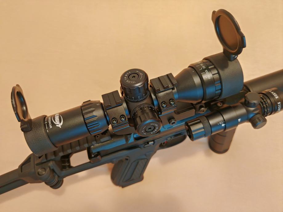 Knight optika 3-9X ima osvjetljenu končanicu i podesivi fokus.