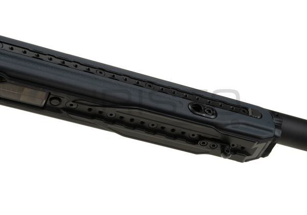 Kundak je izrađen od robusnog polimera i sadrži sustave za ugradnju izrađeni od CNC obrađenog aluminija. Duljina izvlačenja može se regulirati dodavanjem razmaknica, a uzduž obraza se podešava pomoću ugrađenog mehanizma.