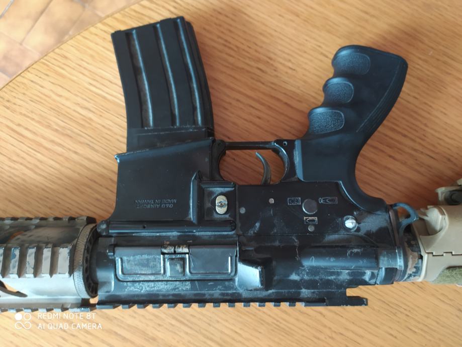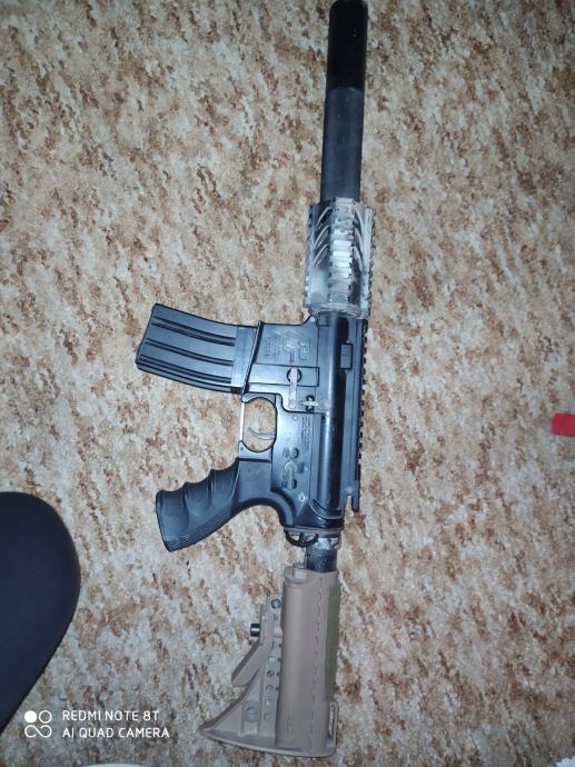 Puska je slagana od kvalitetnih komponenata...te puno novaca ulozeno...motoric za brzo ispaljivanje kuglica...cijev od kalaša real sword...cijev ide skroz do kraja prigusivaca za bolju preciznost...prigusivac najskuplji i najveći sto je tada postojao...hop-up komora aluminijska sa kotacicem za lakse stelanjem...rukohvat gig...kundak stelajuci po dužini izgubljen poklopac odozada pa se vidi baterija ali ne smeta za igru i ucinkovitost...zlatni konektori za bolju provodljivost...gig kuciste puske ...classic army gearbox jedan od najizdrzljivih i tesko nabavljiv...puska je tip top sve radi kako treba...koristio sam kalaša real sword pa mi je trebala neka laksa i manja za prostorije pa je slozena da brzo ispaljuje i taman snage da se smije pucati rafalno u prostorijama po zakonima airsoft saveza...puska je odlična za igru i vrijedi pogledati..ima par ostecenja od ljepljive trake duck tape jer sam zalijepio poklopce da se nebo otvorili u igri pa da me ne oda zvuk...ostalo sve tip top...jedino jos baterija ne radi od ne igranja..nova je oko 100kn za novu bateriju vam dajem zlatni konektor za bolju provodnost struje ....te imam sveukupno 2 ili 3 spremnika...na puski je sve slozeno da kad se skace i trci s njom da se ne cuju nikakvi zvukovi..posjeduje i combat priključak za remen...za sve ostale informacije javite se...posjedujem i neke original dijelove...te imam i nesto opreme...razlog prodaje jer stoji i presao sam na drugi sport...zamijenjeni su i kablovi te mnoge druge stvari...nije fiksno...zamjene moguce za co2 replike i pistolje