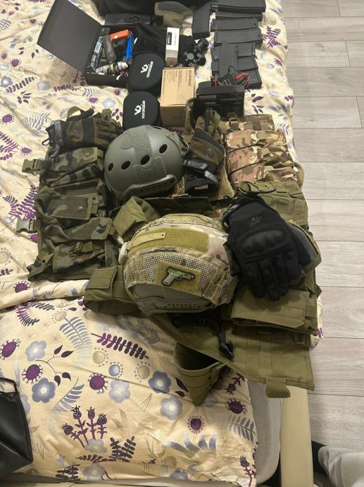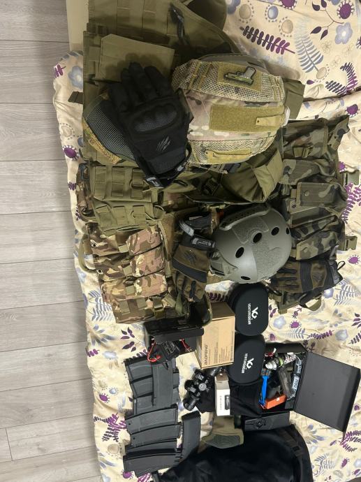 + 3 pancirke,6+kg kuglica,2x radio veze,2x tracer ,2x naočae, 2x kacige 4x zaštita za usta/nos