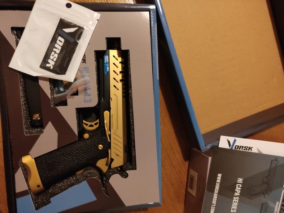 Vorsk 4.3 hicapa dolazi sa original pakiranjem,holsterom, koferom i plasticnim holsterom za 2 magazina. Ispucana 2 magazina da se provjeri da li radi sve kako treba.
