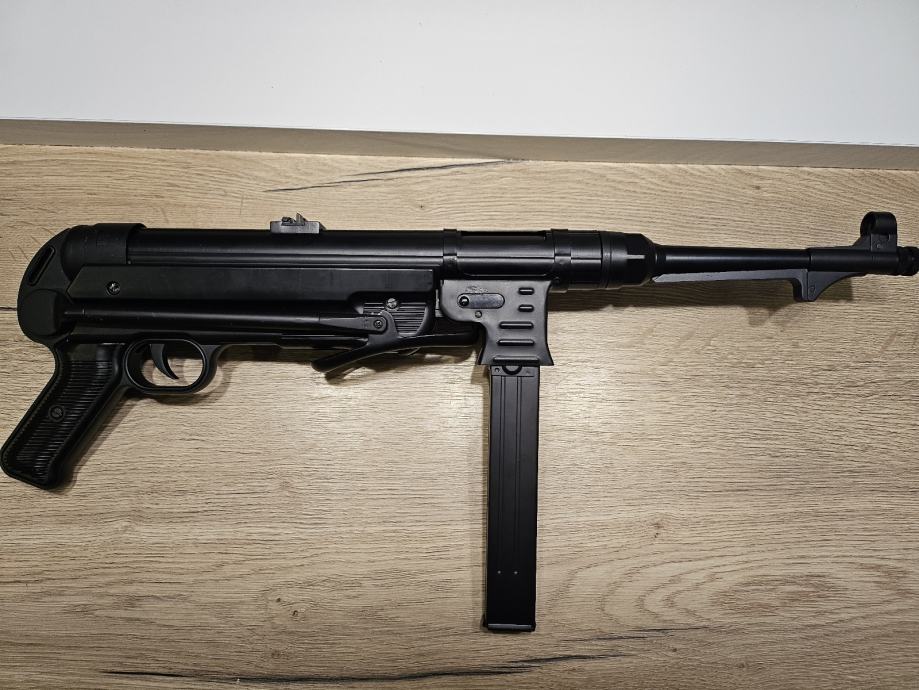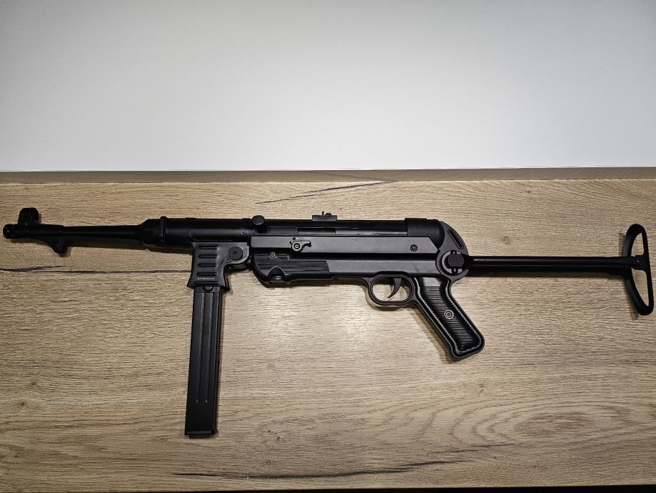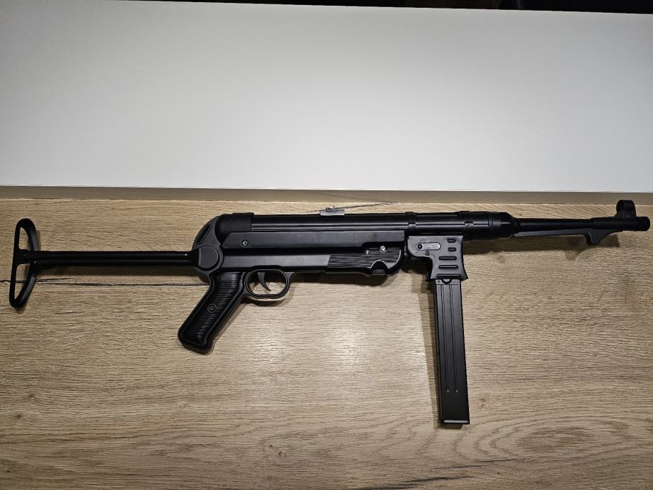 Prodajem Airsoft repliku AGM MP40 zbog nedostatka vremena, replika kao nova. Nikad korištena na susretima. Dolazi sa 6 mid cap spremnika, speedloaderom, Titan 3000mAh 7.4v Nunchuck Tamiya Li-Ion baterijom, remenom, originalnim pakiranjem, kuglicama, šipkom za čišćenje cijevi. Cijena nije zadnja.