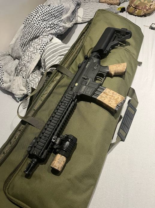 Prodajem rabljenu airsoft repliku Daniele Defense MK18 s kompletnim priborom. Replika dolazi s dodatnim spremnicima i taktičkom opremom kao što se vidi na slici. Idealna za airsoft entuzijaste koji traže kvalitetnu i pouzdanu repliku.
